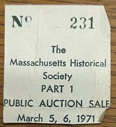 The Massachusetts Historical Society received the collection of President John Quincy Adams and his descendants in 1914 but later sold the coins in 1971 through an auction by Stack’s [PDF].