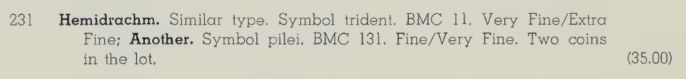 Sawhill was present at the 1971 sale and purchased Lot 231 containing two coins. He received the collector’s ticket shown below. We have Sawhill’s invoice and know he paid $32.50 [PDF]. This is the same value listed in the Prices Realized for the auction.